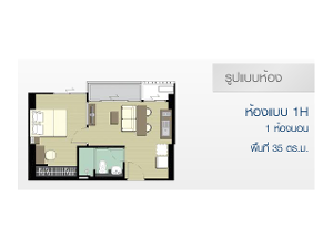 ขนาด 35 ตรม. 1ห้องนอน 1ห้องน้ำ