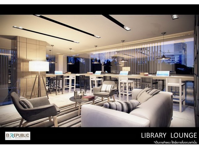 ภาพบรรยากาศในส่วนของ Library Lounge และ Business Center ที่ลูกบ้านสามารถมานั่งพักผ่อน มีมุมอ่านหนังสือ และสามารถเล่นอินเตอร์เน็ตได้ (ฟรีWi-Fi )