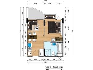 - 1 ห้องนอน ชั้น 6 ใน ตึก 8 ชั้น 34.80 ตรม